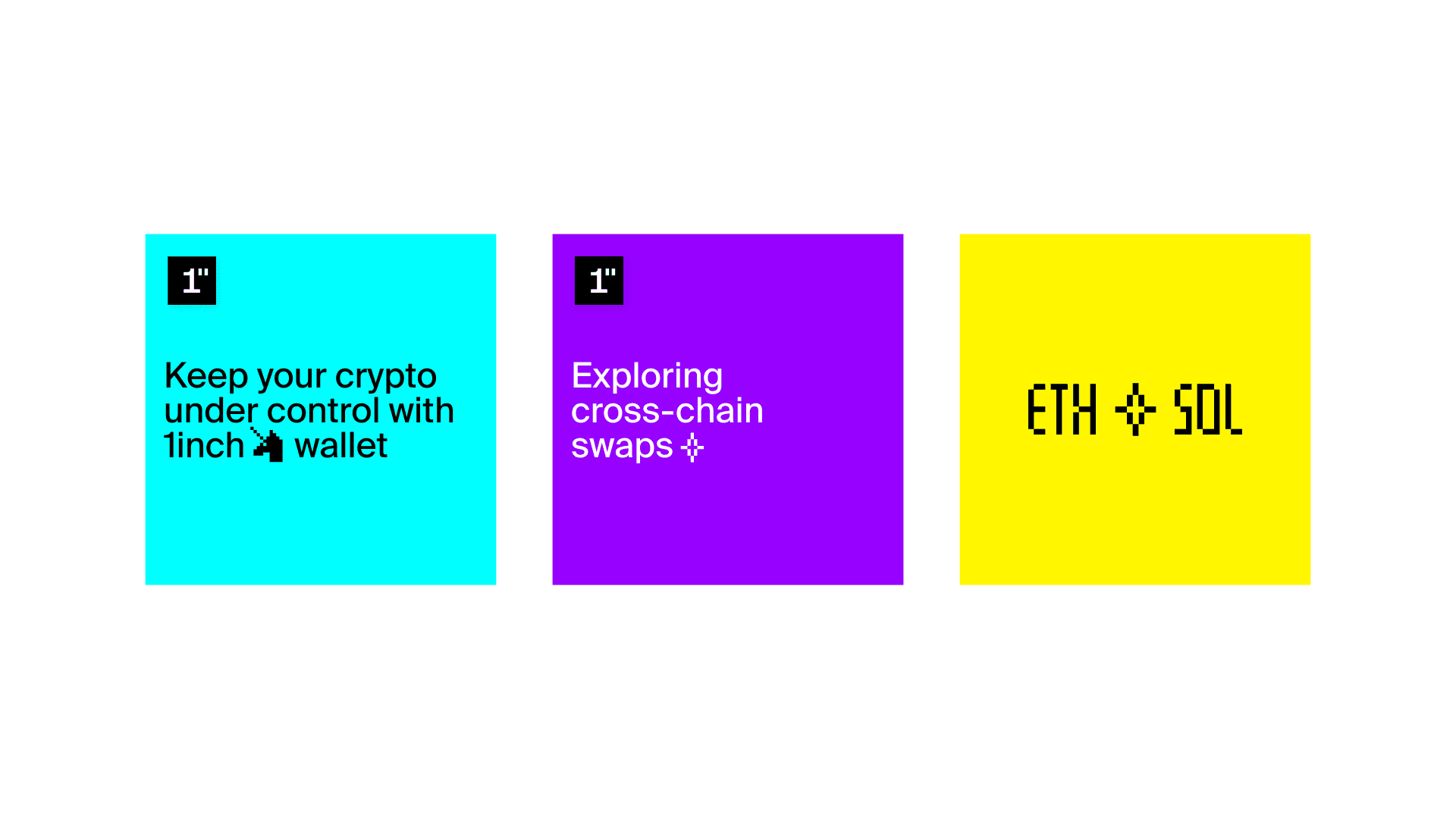 The new 1inch branding is simple, bold, and honest. Modular elements symbolize blocks in a chain — they form the framework of the visual system and the backdrop for the new, daring logo.