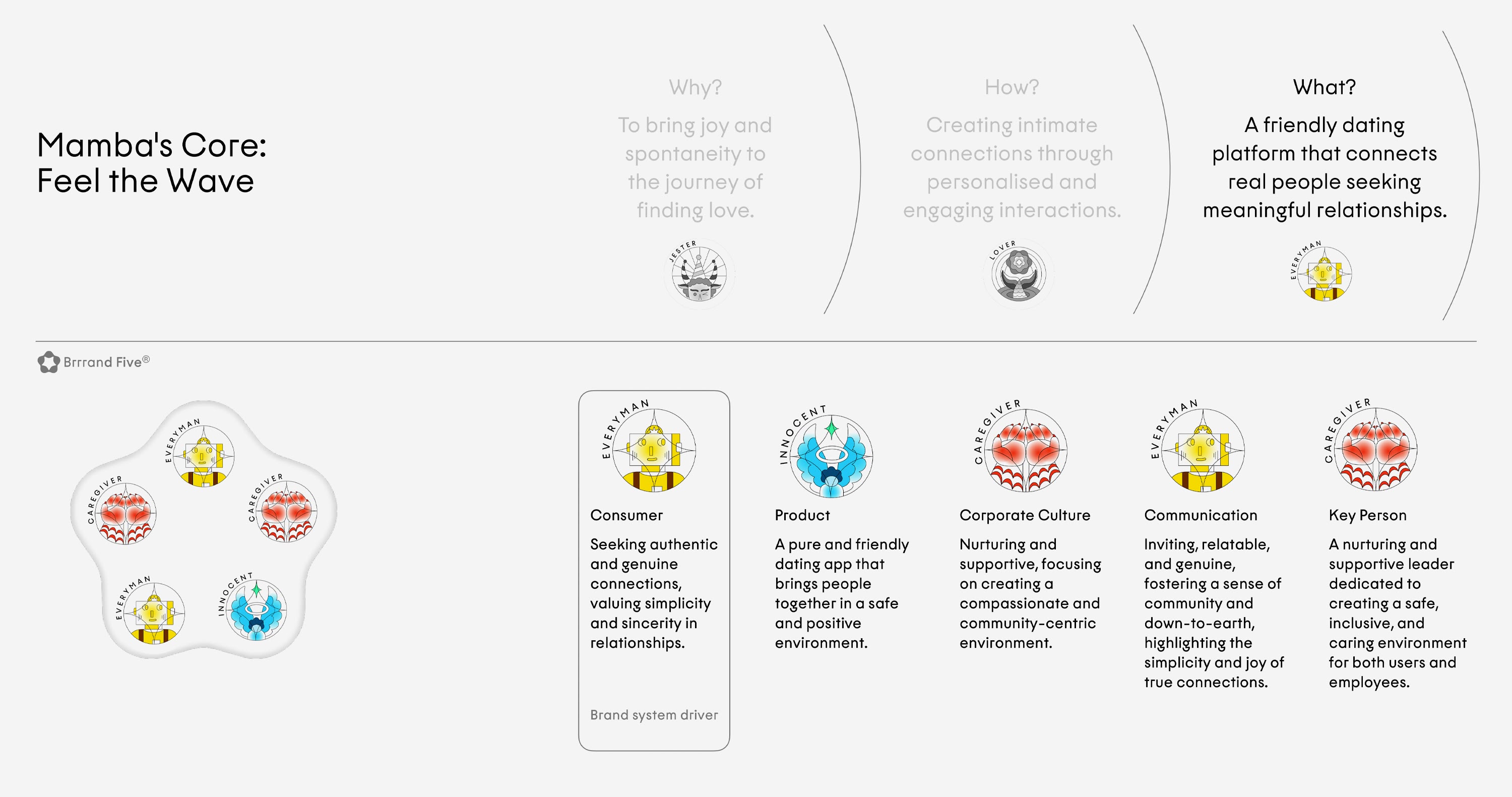 The heart-shaped icon is simple and bright, capturing the joy of seeking and finding. Wave patterns carve the letters of the logo, celebrating the variety of connections and unique journeys for everyone. Fruity shades of orange, blue, pink, and yellow energize the brand. All this jazz brings to life the brand’s vision of an inclusive community.