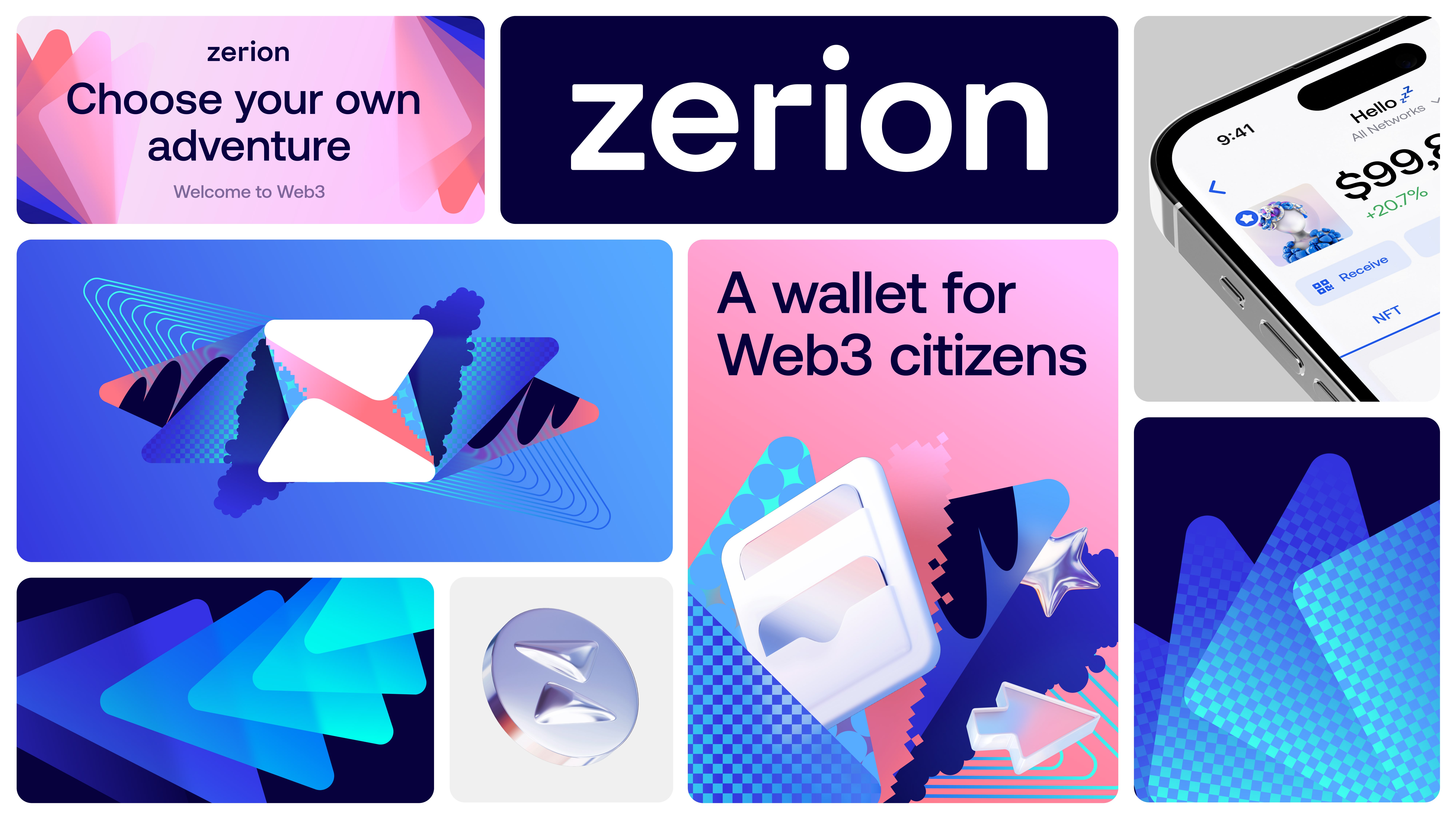 Zerion Web3 wallet is an enigmatic space, inviting to immerse, explore, and discover its infinite possibilities. As the layers unfold, the space becomes more complex, representing the evolving en engagement of users with shapes, colours, icons, illustrations, and above all, dynamic NFT avatars.
